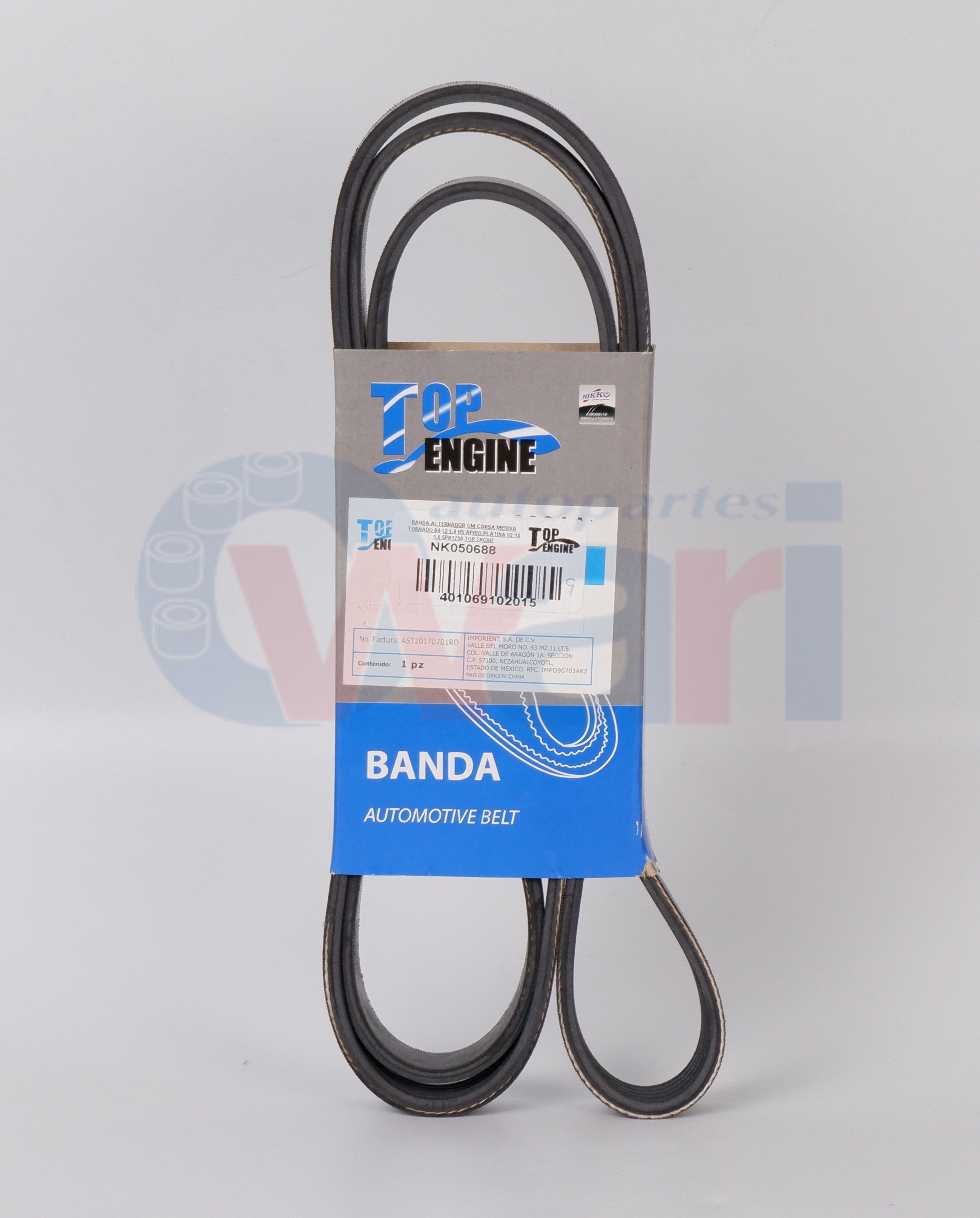 BANDA ALTERNADOR GM CORSA MERIVA TORNADO 04-12 1.8 NS APRIO PLATINA 02-10 1.6 5PK1750 TOP ENGINE