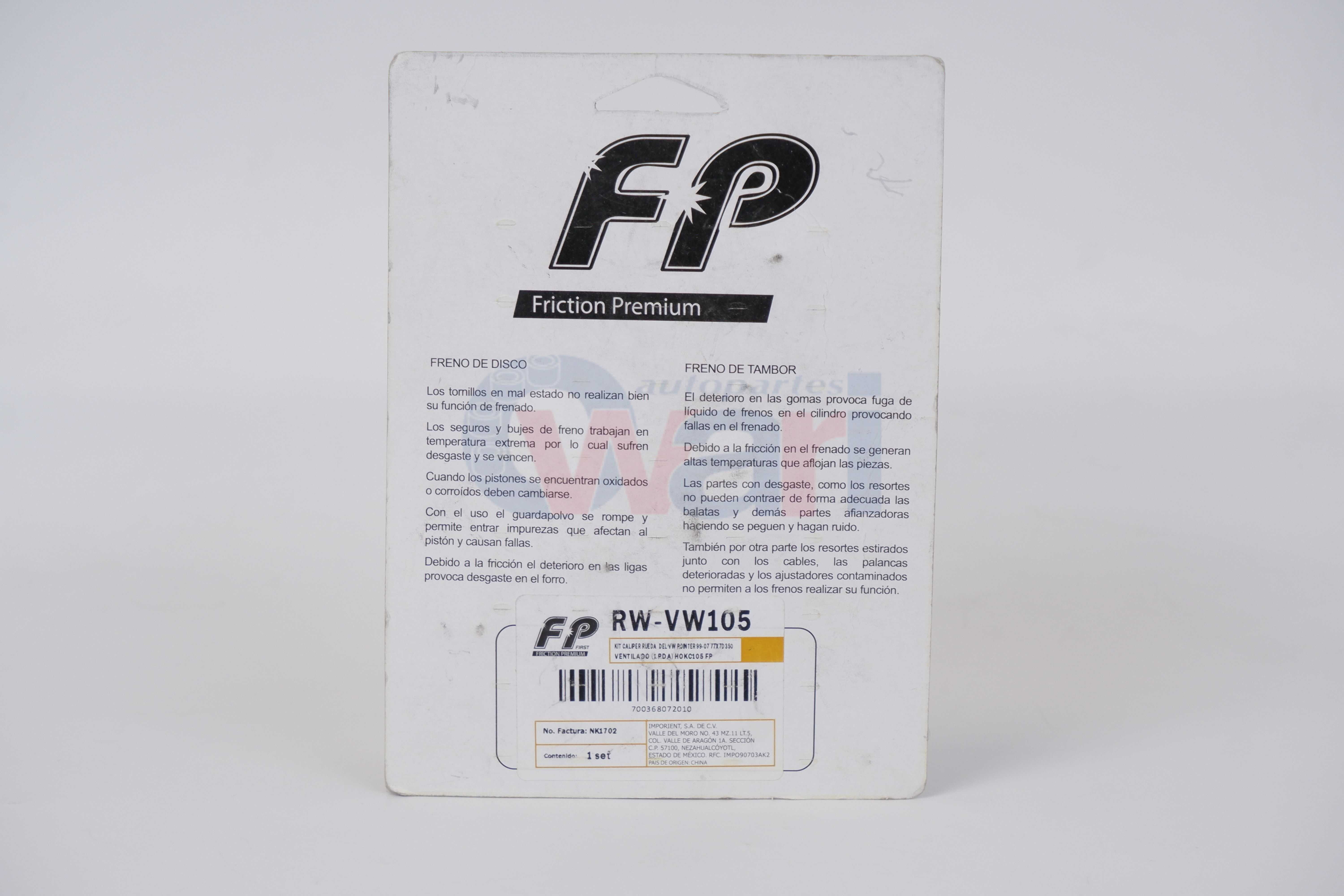 KIT HERRAJERIA DISCO DEL VW POINTER 98-09 GM CHEVY PICK UP 99-03 8284-D1173 HOKC105 FP